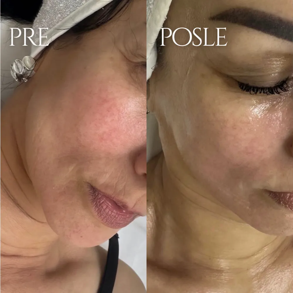 Rezultati su vidljivi odmah nakon tretmana — koža izgleda čistije, sjajnije i odmornije. Efekat se dodatno poboljšava narednih dana. Ne postoji period oporavka — odmah se vraćaš svakodnevnim aktivnostima, bez crvenila ili nelagodnosti.