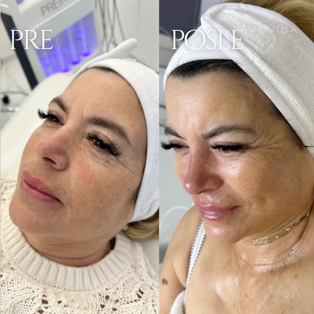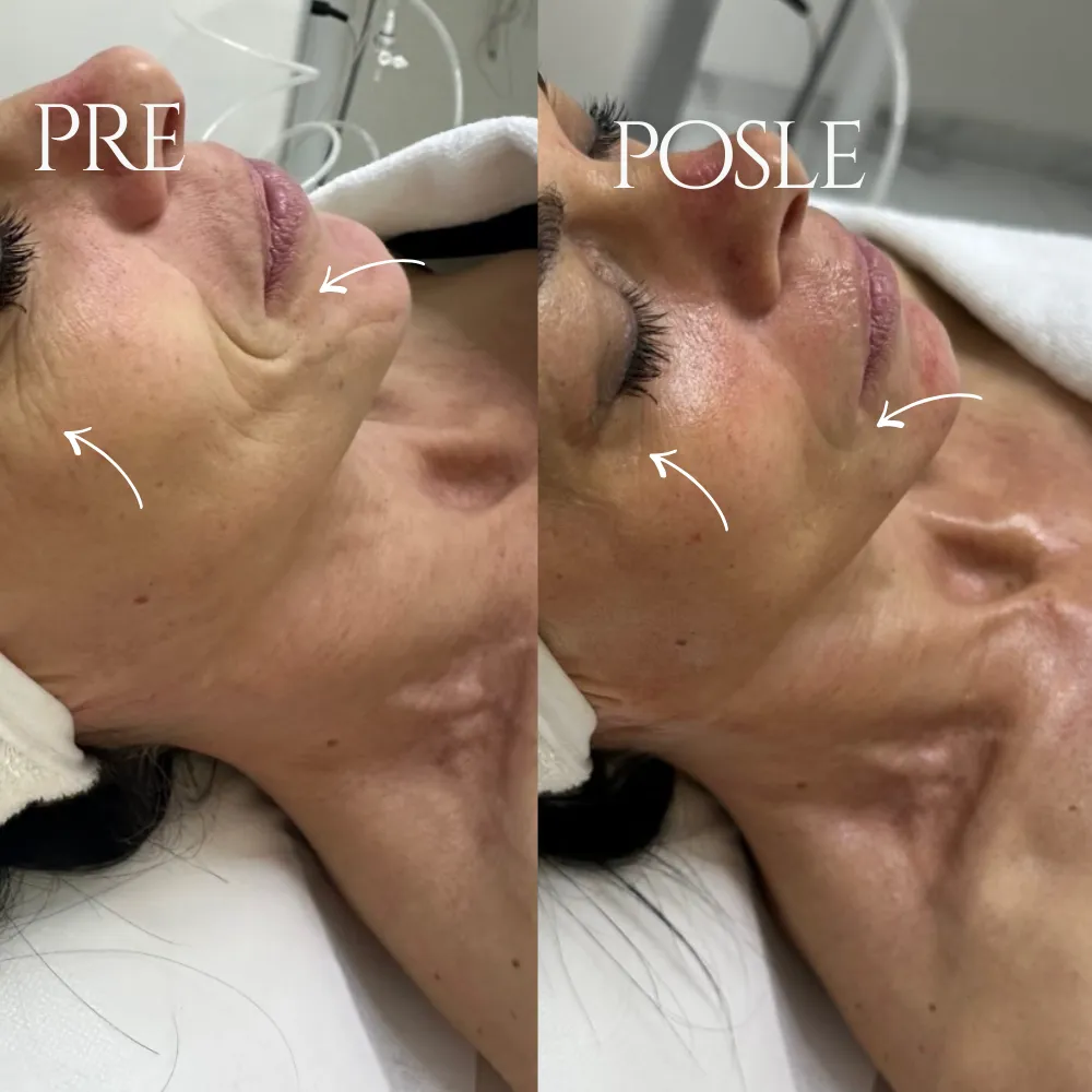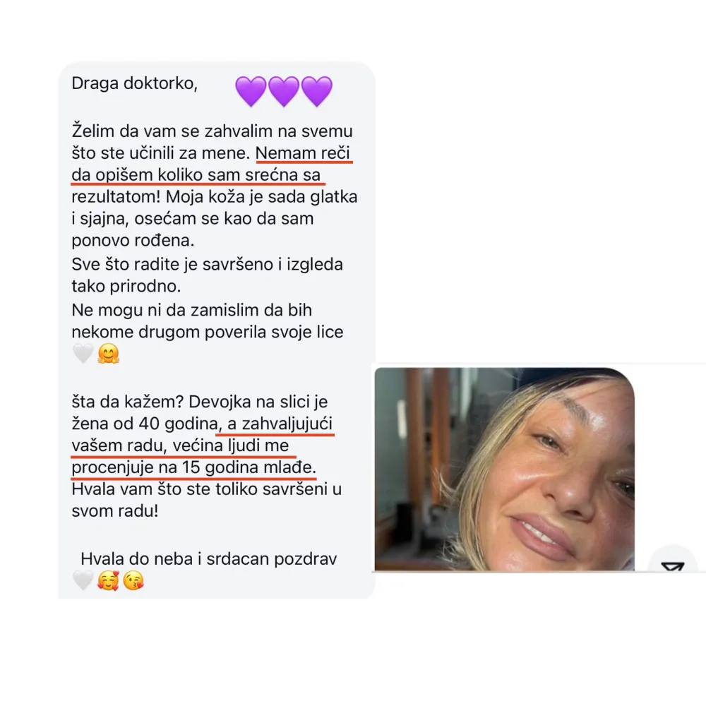 Naša klijentica nakon 1 tretmana zategnutija koža lica i vrata, kao i borice ispod očiju i oko usana