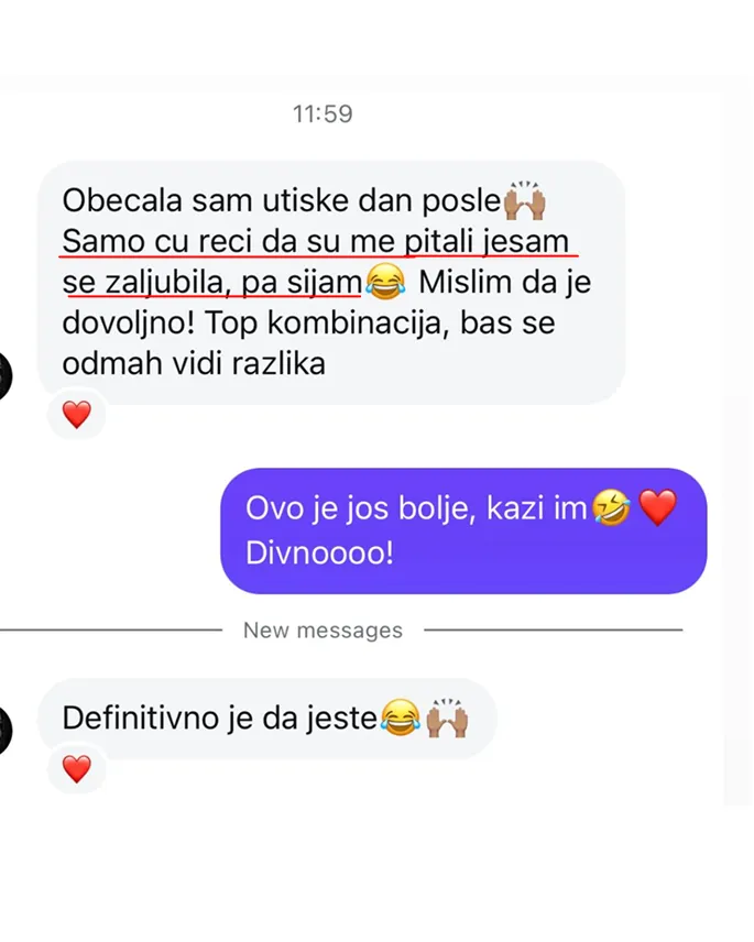 Ne postoji oporavak. Nakon tretmana možeš se odmah vratiti svakodnevnim obavezama — bez crvenila, otoka ili pauze.